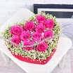 11 роз (на фото): роза розовая - 11 шт., гипсофила, оазис сердце малое. Примерный размер: 25Х25 см.